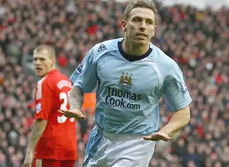 Нападающий "Манчестер Сити" празднует гол в ворота своего бывшего клуба "Ливерпуля".