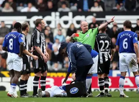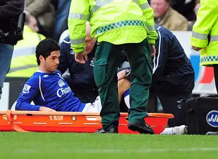 Не сыграв и 5 минут в матче с "Ньюкаслом" полузащитник "Эвертона" Микель Артета вынужен покинуть поле на носилках. Увы, задеты связки колена, и теперь футболист проведет в лазарете около полугода.