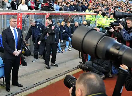 Новый главный тренер "Челси" Гус Хиддинк стойко выдерживает напор фото- и видеокамер.