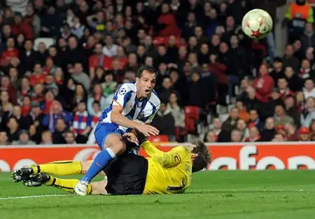 Однако уже с первых минут стало очевидно, что поддержать обещание, данное тренером, футболистам "МЮ" будет нелегко. Агрессивные действия "Порту" никак не давали хозяевам наладить успешный переход из обороны в атаку: передачи Скоулза и Кэррика раз за разом улетали в аут или в ноги футболистов в синих майках - неудивительно, что в какой-то момент счетчик показал значительное преимущество "драконов" по ударам. Неудивительно, в общем-то, и то, что именно португальцы сподобились открыть счет усилиями Кристиану Родригесу. Как и в недавнем матче с "Астон Виллой", голевую атаку соперника "МЮ" начала ошибка Криштиану Роналду, после чего случился неудачный вынос Джонни Эванса - собственно, и одаривший Родригеса мячом. Хлесткий, красивый удар в дальний угол показал всю серьезность намерений португальских визитеров.