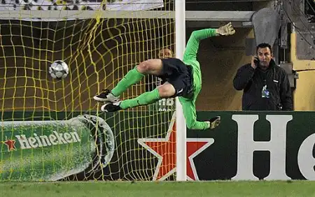 Так продолжалось до середины второго тайма, пока Сеск не разразился гениальной передачей на Эммануэля и эта тоголезская "бомба" не взорвалась. В своем стиле через пол поля чемпион Европы-2008, словно рукой забросил мяч на форварда и тот, стоя спиной к воротам сравнял счет. Многих нападающих ругают за подобное расположение, но немаленький Адебайор сумел сложиться и "ножницами" через себя точно в угол вколотить футбольный снаряд (1:1).
