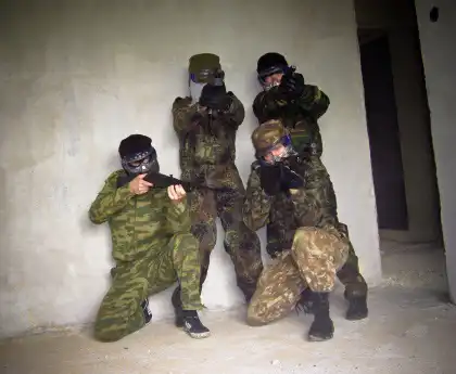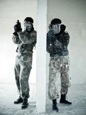 В первую очередь - защита, и во вторую - маскировка. Для защиты лица и глаз используют в основном пейнтбольные маски дополнительно усиленные сеткой, тканью или металлом, либо очки закрытого типа с поликарбонатными стёклами, выдерживающие попадание из модернизированной MP-512 в упор. Для защиты тела используют одежду из прочной ткани, налокотники, наколенники, перчатки. Главный принцип - не должно оставаться открытых участков тела.