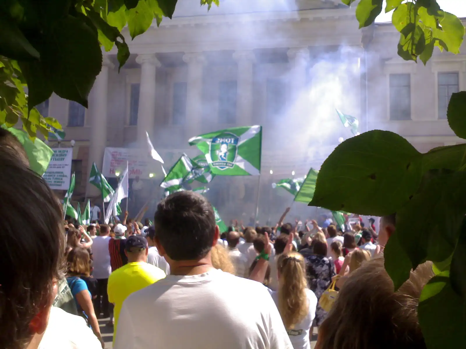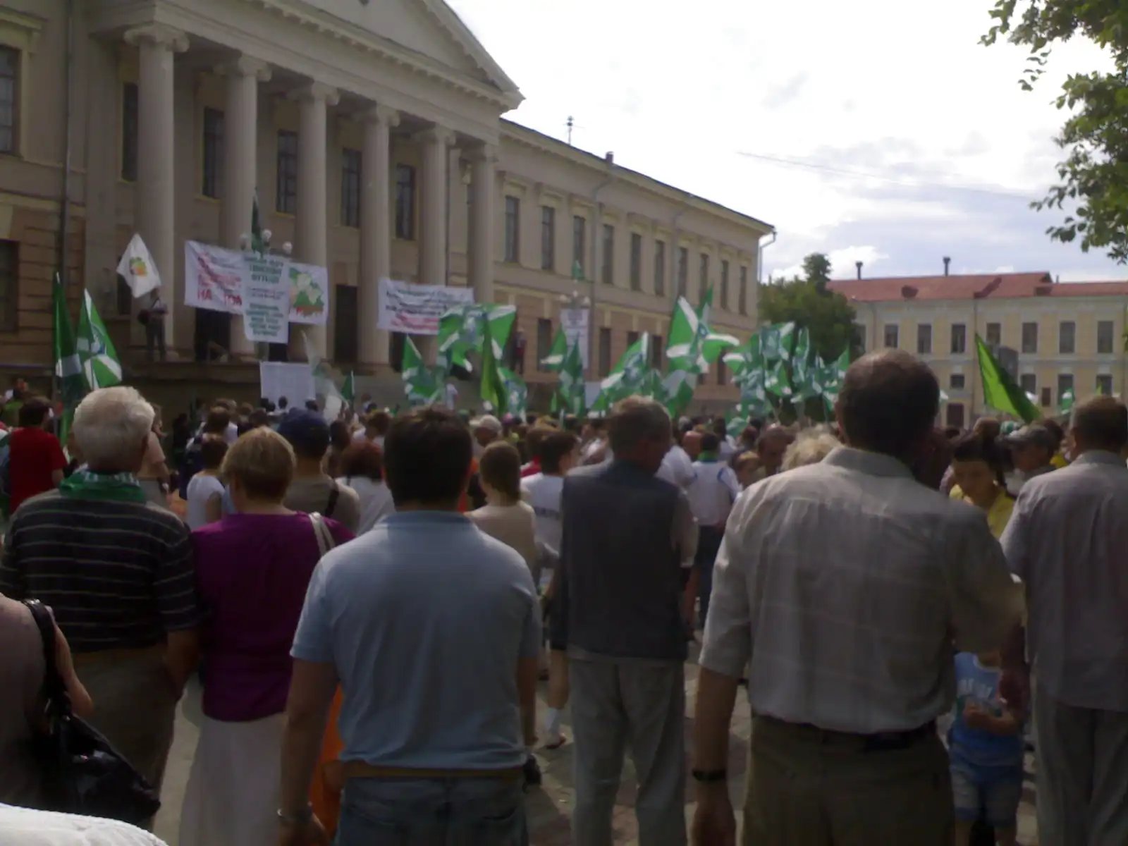 12 июля 2009г. в 15 00 на Пл. Новособорной около здания СФТИ прошел митинг в поддержку томского футбольного клуба Томь.