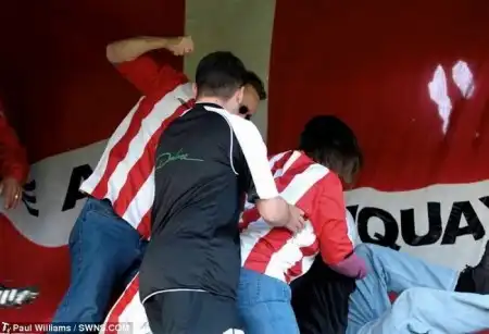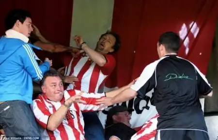 Друзья болельщика попытались их разнять, но в результате произошла драка, в которой участвовало 20 человек, включая женщину с ребенком