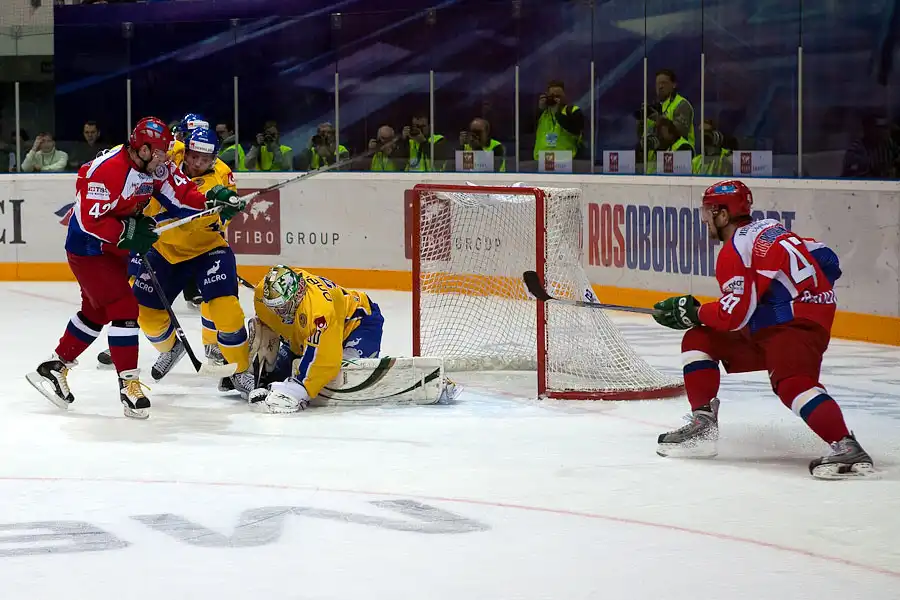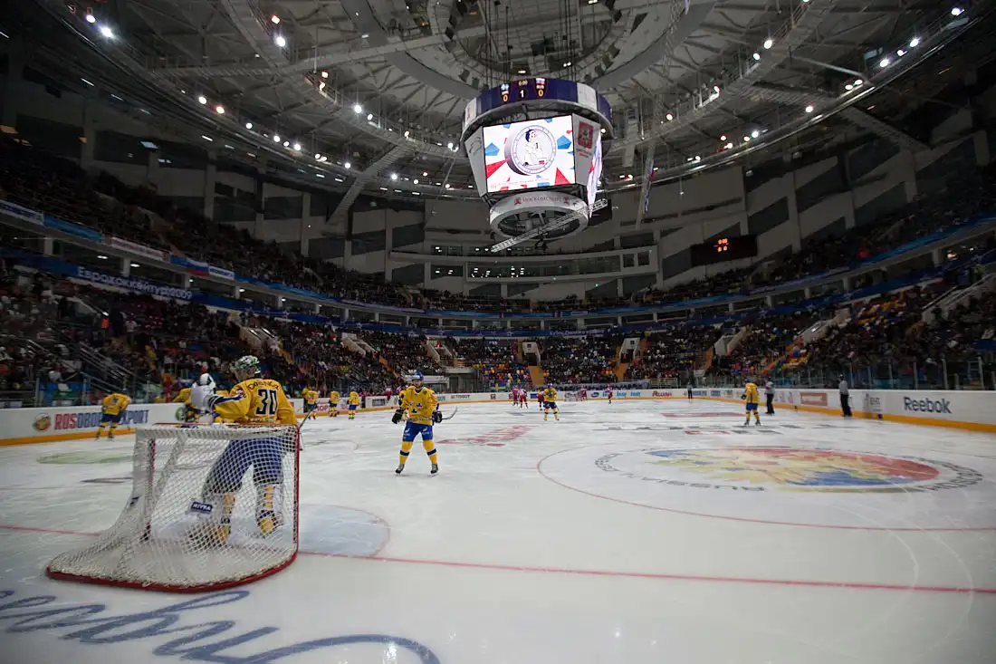 Вчерашняя съемка хоккейного матча Россия–Швеция — первая в моей практике. Так что, строго не судите. Было очень интересно. Современный хоккей вообще очень красивое зрелище — с яркой картинкой и мощной звуковой «оркестровкой». А тут еще и современный стадион, на льду — одни из лучших в мире сборных команд и у меня есть возможность снимать это вблизи — что это, как не настоящий праздник? Жалко только, что он так быстро кончился — игра пролетела, как одно мгновение.