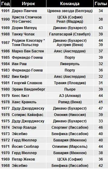 В 1987 году Родион Кэмэтару получил «Золотую бутсу», однако позже был лишён награды (он забил 18 голов в последних 6 матчах, и был доказан их договорной характер), обладателем приза 1987 считается Т. Польстер, Аустрия (Вена, Австрия), с результатом 39 голов.