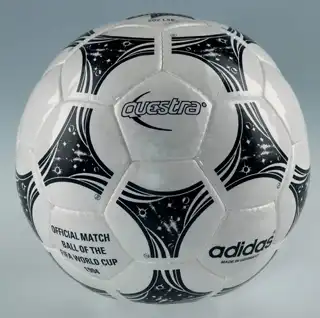 Официальный мяч чемпионата 1994 года – воплощение высоких технологий. Использование внутреннего энерговозвращающего слоя полиуретановой пены позволило мячу стать мягче (то есть послушнее) и гораздо быстрее. Вдохновленный космическими технологиями и американским стремлением к звездам (Quest for the Stars, отсюда и название), Questra установил новые стандарты.