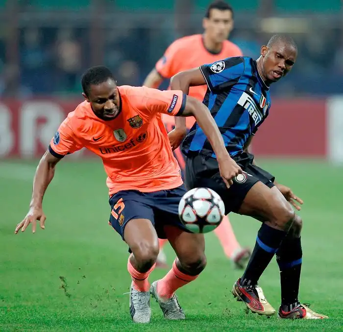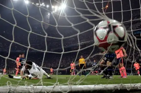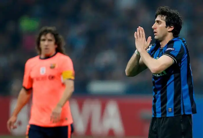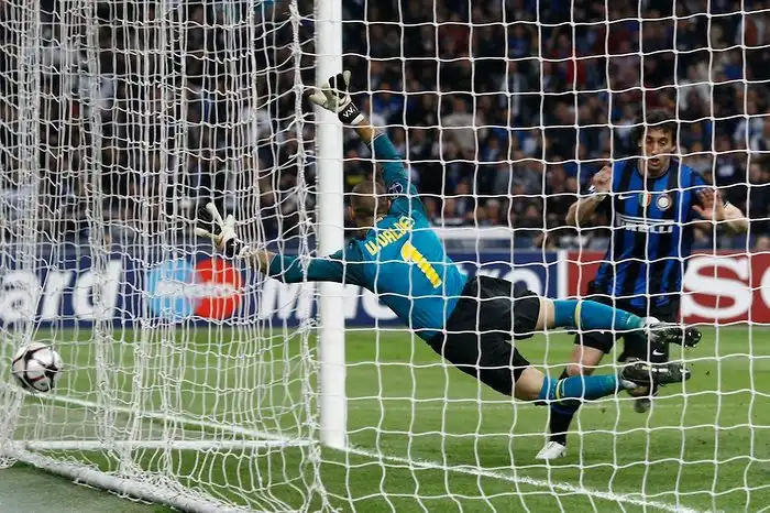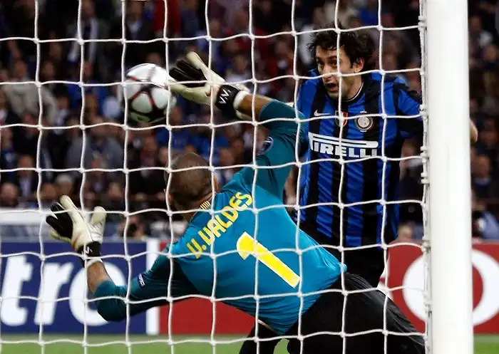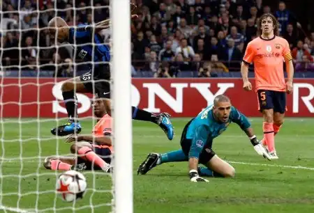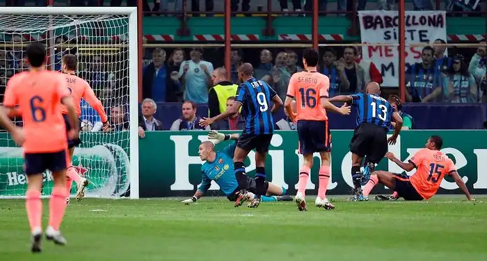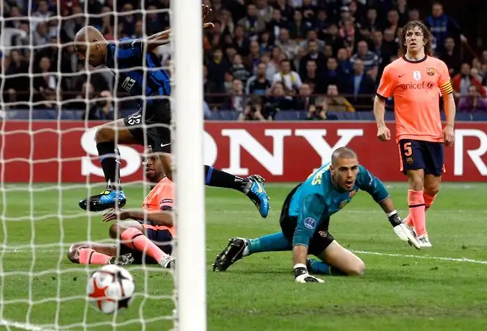 Оборона "Барселоны" рассыпалась во время атаки соперника, Это`о с правого края штрафной прострелил на Милито, который с разворота отдал мяч свободного Снейдеру, а тот не имел права промахнуться с семи метров!
