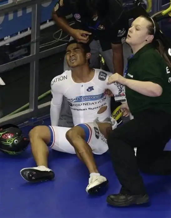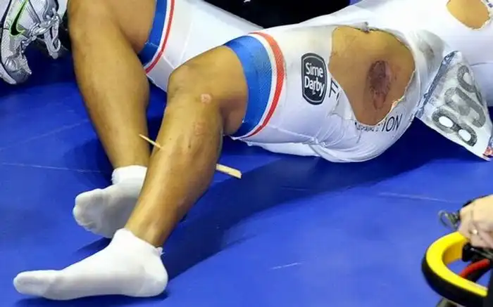 Малазийский велогонщик Азизулхасси Аванг занял третье место в гонке этапа Чемпионата мира в Манчестере. Аванг добрался до финиша с 20-сантиметровым куском дерева в ноге. Велогонщик получил ранение незадолго до финиша, когда большинство участников гонки, столкнувшись, упали с велосипедов.