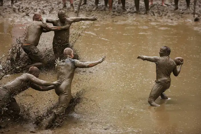 Американский футбол в грязи. Северный Конвей, штат Нью-Гэмпшир.