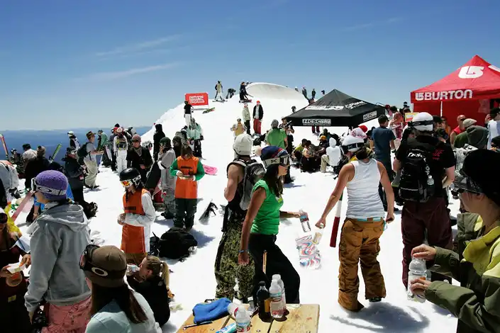 Летний сноуборд. Гора Маунт-Худ, штат Орегон.
