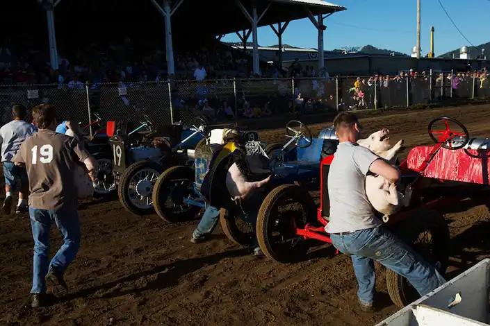 Гонки на автомобилях Ford Model T со свиньями. Тилламук, штат Орегон.
