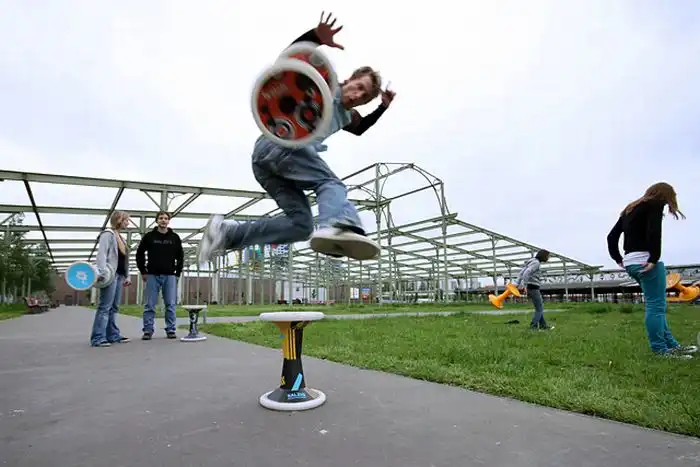 Hockern - новый экстремальный спорт из Германии. Он включает в себя элементы акробатики и брейк-данса. Спортсмен на предмете, который напоминает табурет, должен выполнить ряд трюков, таких как "баланс", "вращение", "скольжение на табурете", а закончить он должен трюком с приземлением на стул.