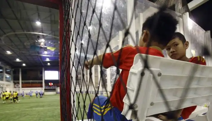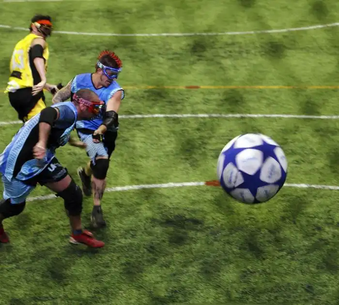 тут игроки должны загнать огромные мяч в ворота соперника и уклонится от удара шокера, которым снабжен каждый игрок.