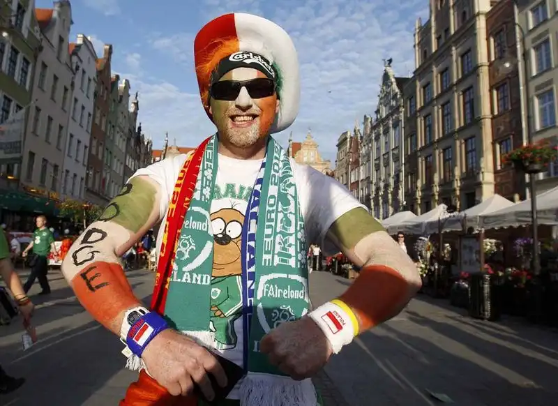 28. Ирландский болельщик позирует для фото в Гданьске, 13 июня 2012 года. (REUTERS/Peter Andrews)