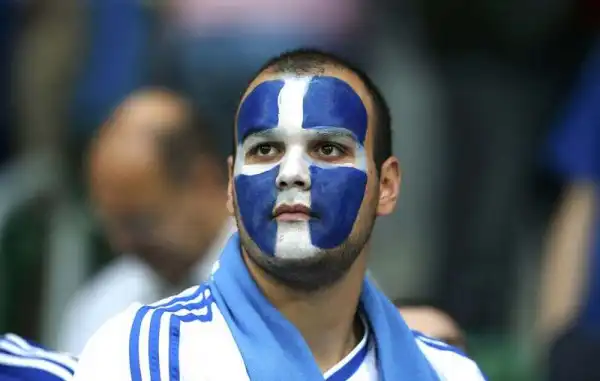 40. Опечаленный грек после окончания матча, в котором Греция проиграла Чехии со счетом 1:2, Вроцлав, 12 июня 2012 года. (REUTERS/Petr Josek)