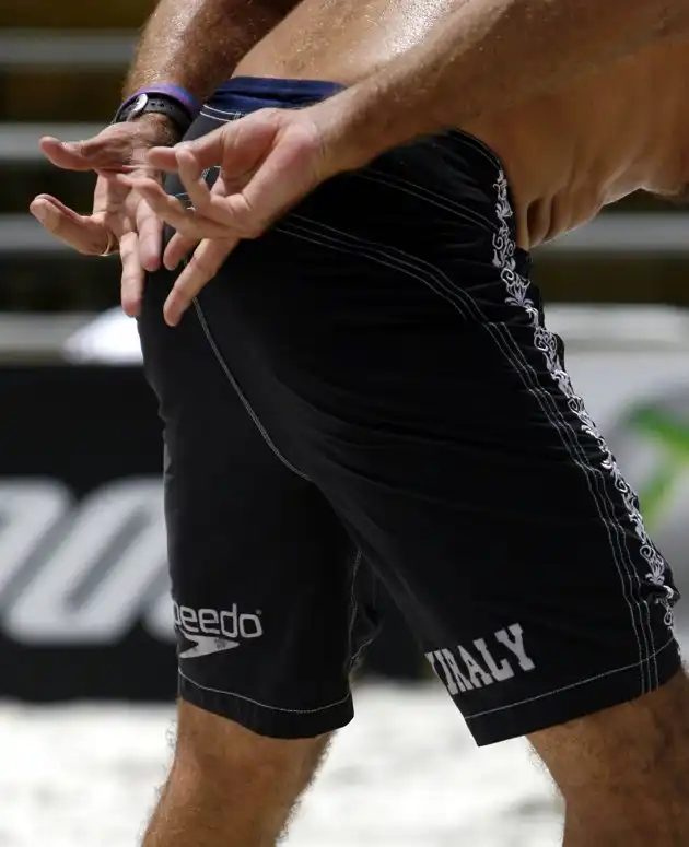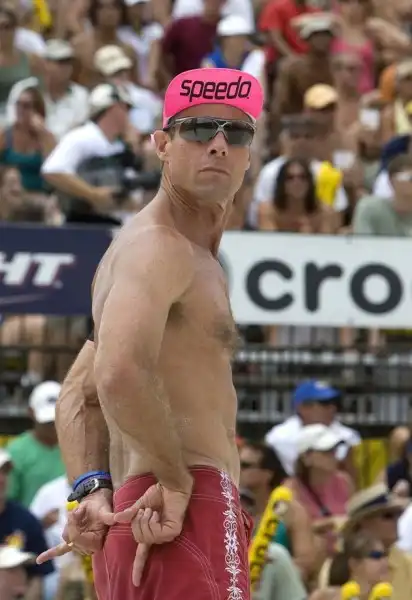 Тампа – 3 июня: Карч Кирай подает знак партнеру во время финала против Джейка Джибба и Шона Розеншталя на AVP esurance Tampa Open. Джибб/Розеншталь выиграли у Кирая/Вонга в двух играх со счетом 21 – 18, 21 – 17.