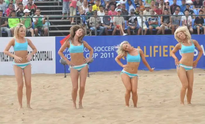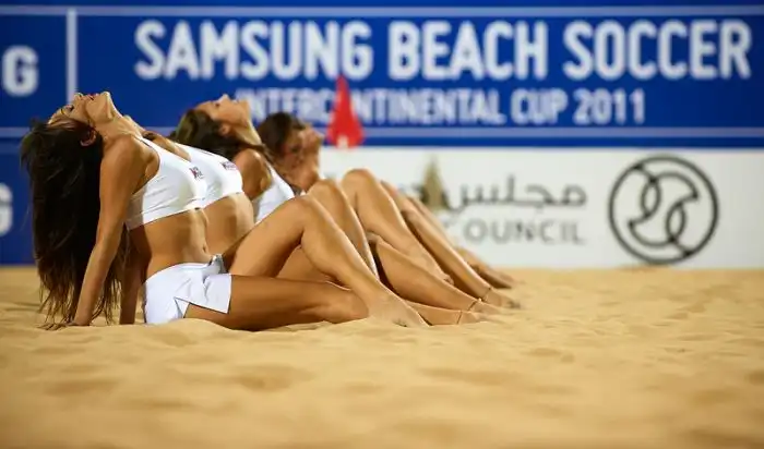 Красивые и стройные девушки в бикини, которые очень любят играть в пляжный волейбол.