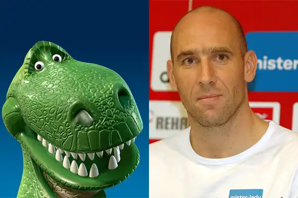 Ян Коллер - Динозавр Дино. Огромный рост и добродушный нрав делают отличают обоих персонажей.