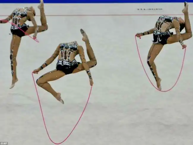 15. Больше шика минимальными средствами: сборная России одета на выступлениях в 2007 году в соответствии с тенденцией того времени: больше оголенности. Трико похоже на бикини с ремешками.