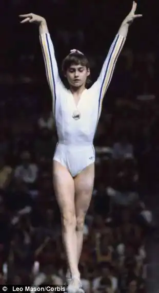 9. 1984: Мэри Лу Реттон из Соединенных Штатов во время выступления на летних Олимпийских играх в Лос-Анджелесе.