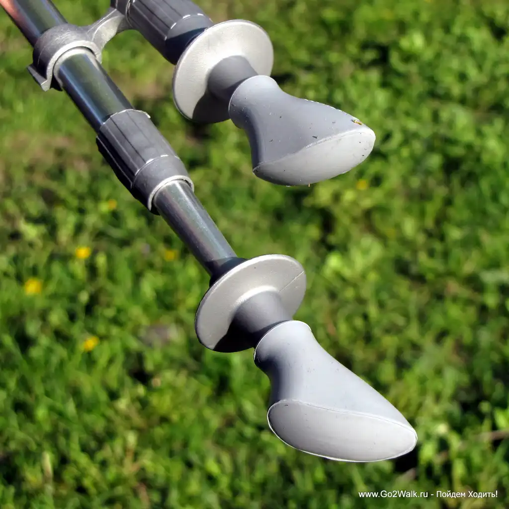Палки необходимо держать близко к телу, так что не разводите руки слишком широко. Палки выступают в качестве дополнительной опоры, к тому же они координируют движения рук и ног и помогают отталкиваться, когда мы делаем шаг. Палки крепятся к рукам специальными ремнями - если вы их отпустите, они все равно не упадут.