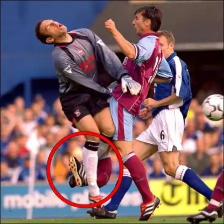 В апреле 1996 года защитник "Кавентри Сити" Дэвид Баст столкнулся с защитником "красных дьяволов" Дэнисом Ирвином. В результате Баст получил перелом ноги, а кость прошла через кожу. Двенадцать минут потребовалось работникам стадиона, чтобы очистить газон от крови, а Петеру Шмейхилю потребовалась помощь психолога. У футболиста был перелом большой и малой берцовой костей. После этого столкновения игрок пережил 26 операций, после которыхне смог профессионально играть в футбол.