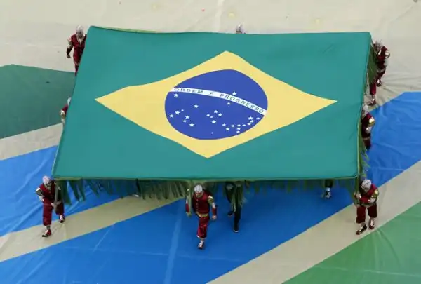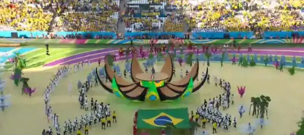 В Бразилии в Сан-Паулу прошла церемония открытия чемпионата мира по футболу 2014 года. На трибунах «Арены Коринтианс» тысячи болельщиков со всего мира приветствовали артистов, гимнастов, акробатов и танцоров капоэйры.