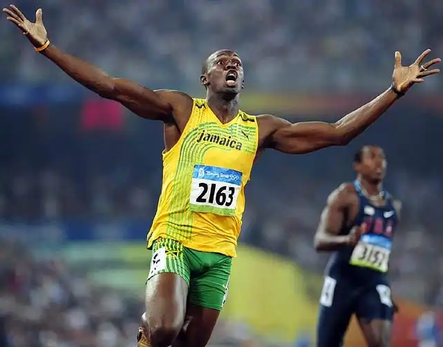 Ямайская молния, самый быстрый человек на планете, легенда спорта Усэйн Болт установил новый мировой рекорд на Олимпиаде-2008 в Пекине. Фотограф Bill Frakes.
