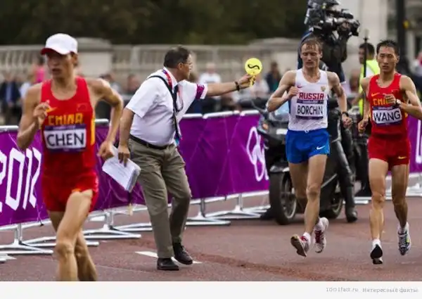 Соблюдение правил оценивается судьями, вооруженными лопатками желтого цвета. На одной стороне лопатки нарисована горизонтальная волнистая линия (потеря контакта с поверхностью), на другой – два отрезка, соединенные под тупым углом (согнутая нога). Лопатки показываются ходоку в случае нарушения правил. Дважды предупреждать спортсмена об одном и том же нарушении запрещается. После предупреждения старшему судье от судьи-фиксатора отправляется красная карточка. Три таких замечания – и ходок видит перед собой уже не желтую лопатку, а красную карточку, что означает дисквалификацию. Бывали случаи, когда спортсмен получал ее уже после пересечения финишной черты.