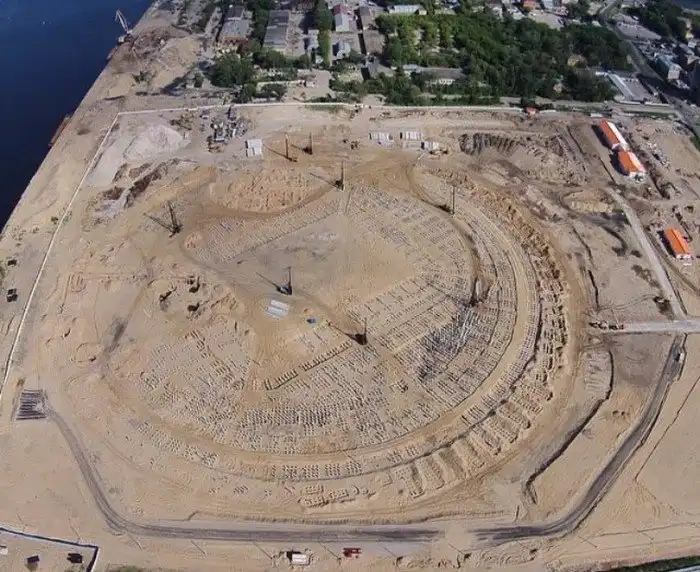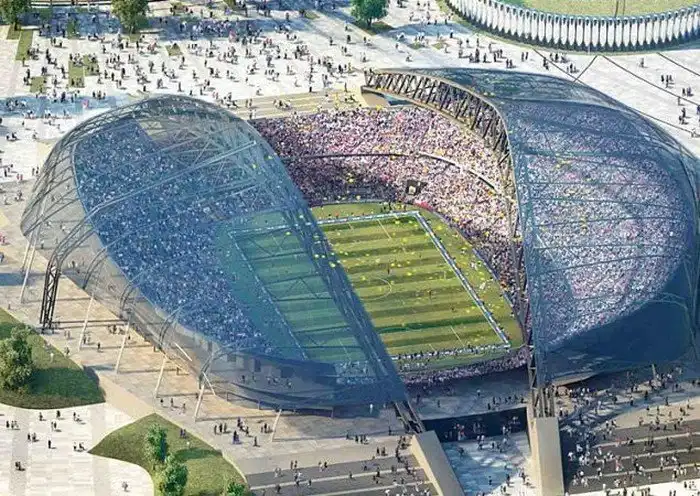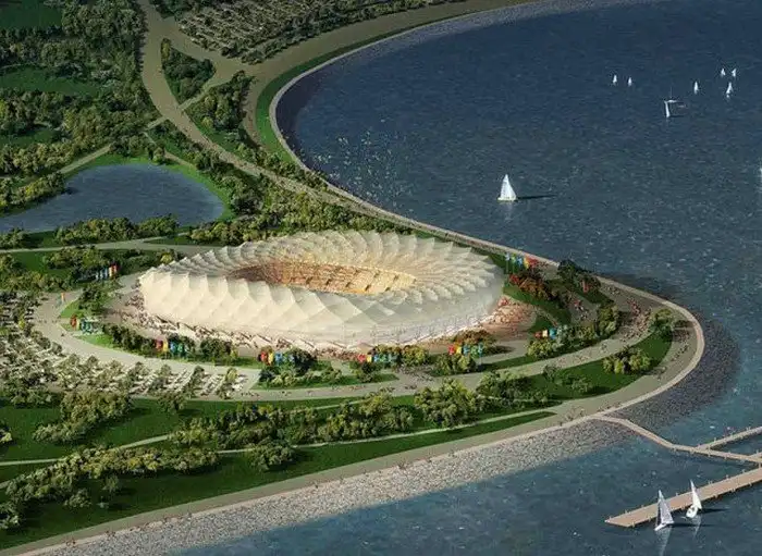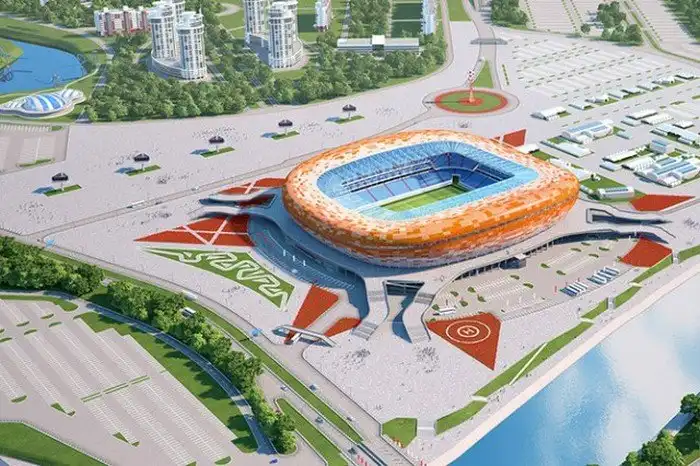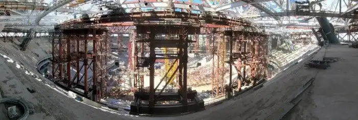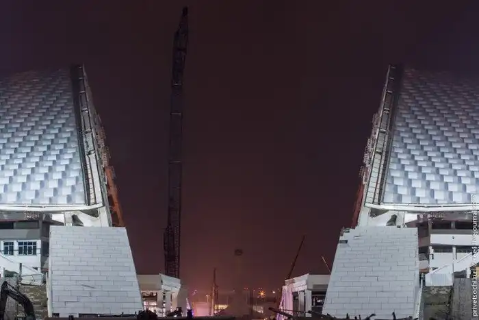 Стадион был построен к Олимпиаде 2014, сейчас идет реконструкция, а вот как он должен выглядеть