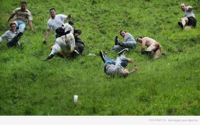 Каждый год восьмифунтовая головка сыра сорта Double Gloucester («Двойной Глостер») устремляется вниз по склону холма.