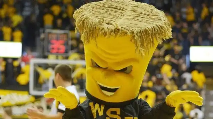 Это желтоголовое чудище - талисман баскетбольной команды канзасского университета Уичита. И сам не красавец, и взгляд у него какой-то недобрый.