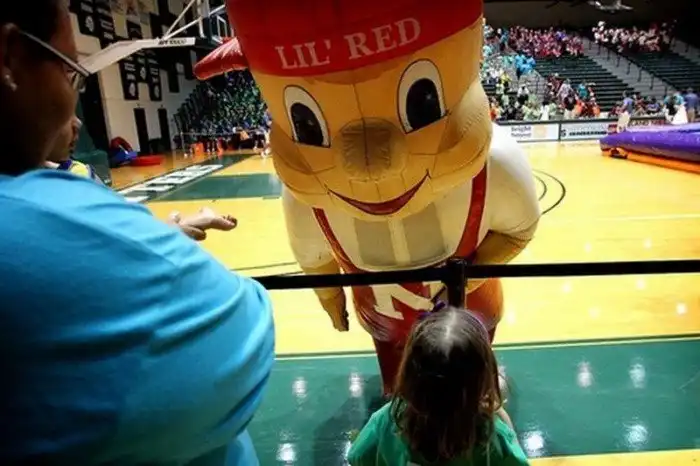 Еще один чудовищный талисман спортивной университетской команды - Лил Ред, гигантский хомяк, при виде хищной улыбки которого дети наверняка начинают биться в истерике. Вообще в гигантских хомяках есть что-то неестественное. А может, это просто хитрый ход, призванный запугать соперника.