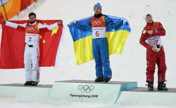 На награждении российский и украинский спортсмены обнялись, обернувшись в флаг Абраменко. У Бурова не было флага — МОК запретил спортсменам из России демонстрировать его на играх 2018 года.