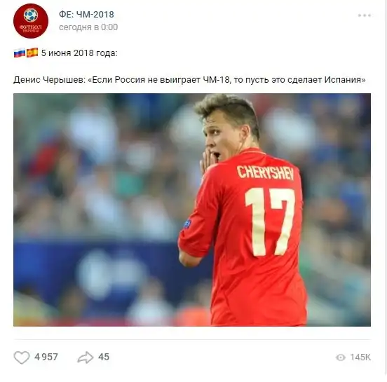 А тем временем, Денису Черышеву припоминают интервью, которое он дал перед стартом ЧМ-2018