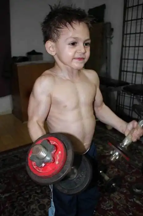 При этом отец ребенка, Иулиэн Строе, сам бывший спортсмен-гимнаст, утверждал, что он не заставлял мальчика ( и, уж тем более, насильно) заниматься спортом. Просто малыш все время находился рядом с ним, и даже когда папа шел в спортзал. Вместо игрушек ребенок видел гири и гантели, а потому уже в два года малыш стал тренироваться с отягощениями. Разумеется, под присмотром отца-тренера.