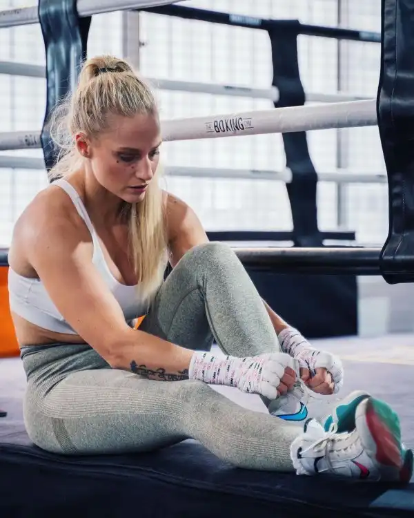 Знакомьтесь, это Эбани Бриджес, которую называют "блондинкой-бомбардировщиком". Такое прозвище она получила не случайно. Австралийская боксерша имеет серию из пяти побед. Два боя она завершила нокаутом и на ее счету нет поражений. Отдельного внимания заслуживает не только ее спортивные достижения, но и внешность. У Бриджес пятый размер груди, но такой "груз" не мешает ей побеждать.