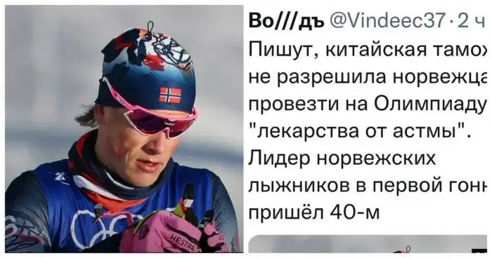 И вот теперь в соцсетях и телеграм-каналах обсуждают информацию о том что Китай просто взял и не пропустил на таможне «чемоданы с тонной препаратов» для астматиков, с которыми норвежские лыжники, так любят завоевывать медали на всевозможных соревнованиях.
