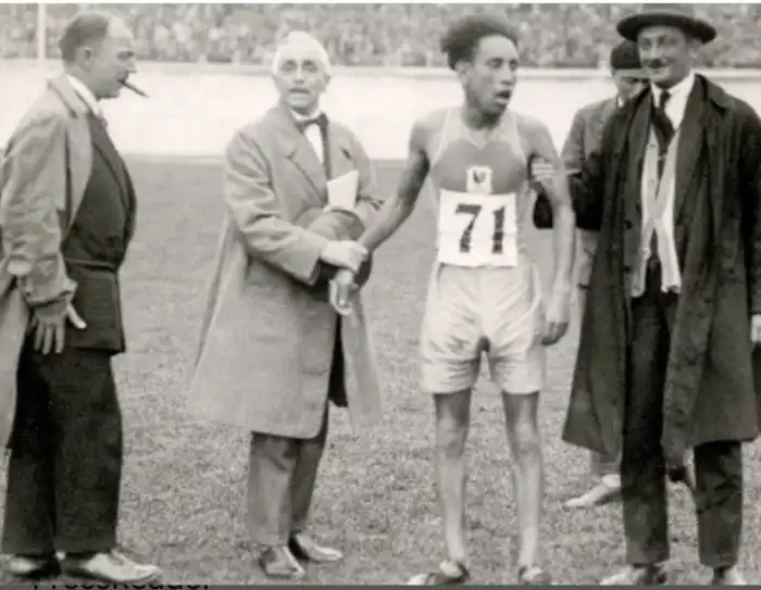 На фото: спортсмен с номером 71 - Бугера Эль-Уафи. Это первый коренной африканец, завоевавший золотую медаль на Олимпийских играх.