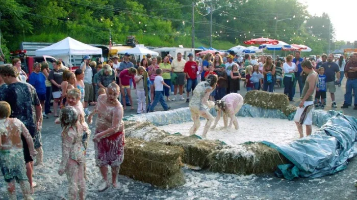 В США проводят очень липкие соревнования: борцы сражаются в бассейне, заполненном центнерами картофельного пюре. После мероприятия «арену» разбирают, а остатки отдают на корм скоту.