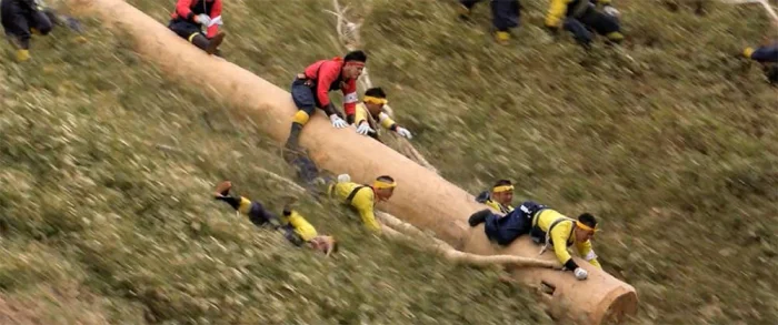 Раз в 6 лет в японском Сува проходит фестиваль Онбасира: мужчины верхом на гигантских бревнах съезжают с горы, рискуя жизнью. Победившие бревна становятся колоннами местного храма.