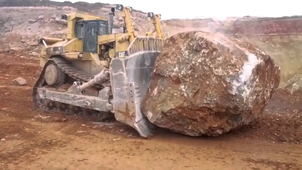 Огромные неподъемные глыбы, с которыми едва ли справляются даже очень мощные машины. Бульдозеры и погрузчики толкают огромные камни!