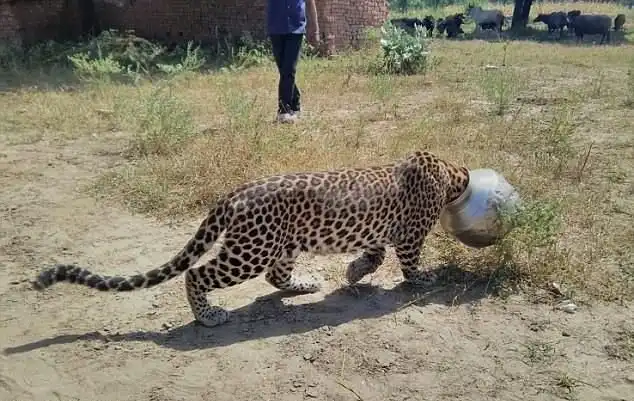 Курьезный случай произошел в одной из индийских деревень в штате Раджастан. Самец леопарда застрял головой в металлическом горшке, попытавшись из него напиться. Животное слонялось по поселку не меньше шести часов в ожидании спасателей, веселя местных. Позже хищника удалось освободить и выпустить на волю.
