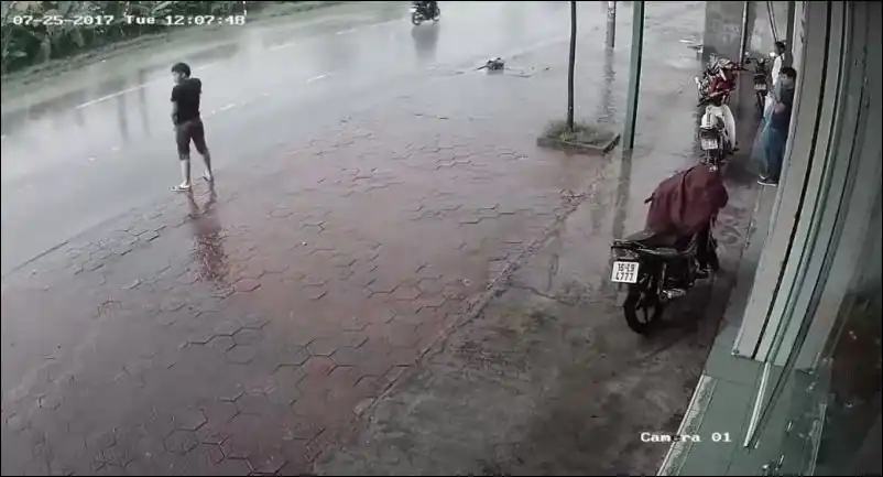 Парень подошел к краю дороги и нимало не смущаясь начал отливать в лужу. Не успел он закончить как по этой луже проехал грузовик и окатил его с ног до головы.