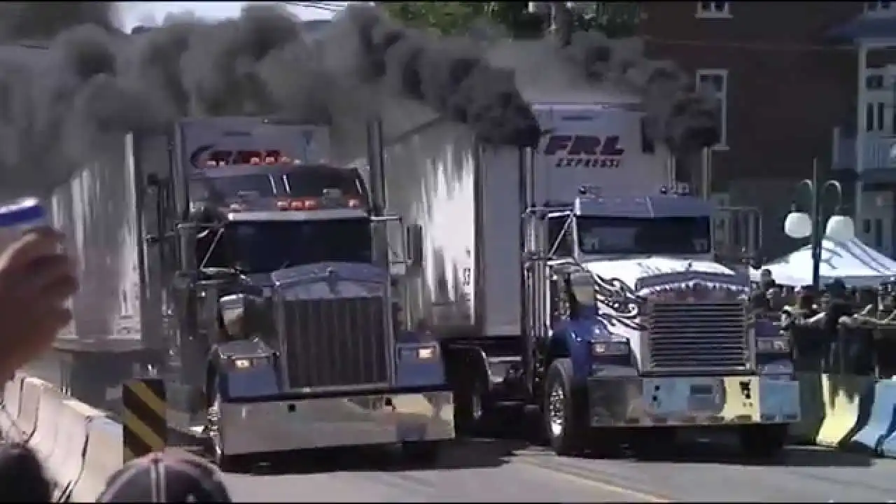 Самые крутые и зрелищные гонки на грузовиках-фурах. Мощь и дым.