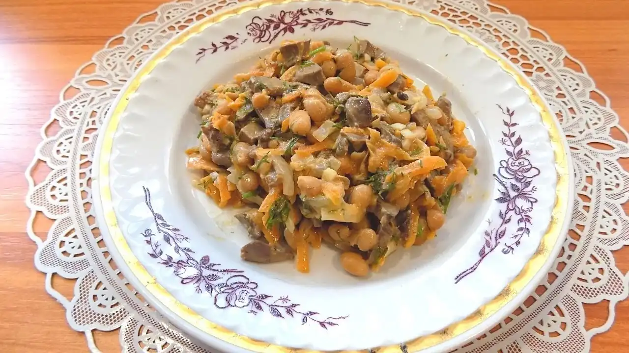 Сегодня я хочу предложить Вам простой рецепт приготовления вкусного салата из куриной печени с белой консервированной фасолью. Такой салат готовится очень просто из небольшого количества продуктов.