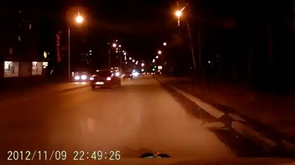 мне кажеться за кадром он успел проскочить а мы это не можем увидеть