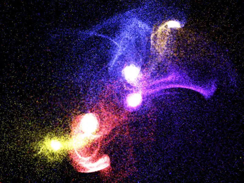Моделирование столкновения галактик, и последующая катастрофа.