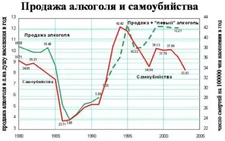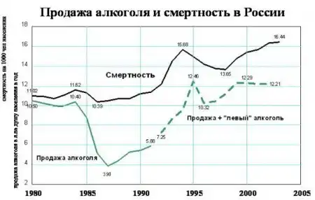 Графики бред полнейший. Я таких "исследований" могу хоть тоннами клепать, толку то от этого? Если уж и проводить агитацию против алкоголя, то не таким же пошлым образом... Геноцид нации говорите.. да мб народ и прислушивался бы к этому, если это вещали не фанатики на всю голову двинутые, а немного более адекватные люди.